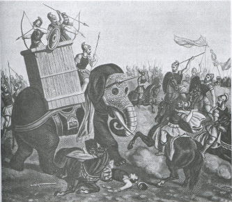 In 280 BC King Pyrrhus attacked Rome “the Romans had never seen elephants before, [and] the elephants wrecked havoc” (p. 81, Ward) on the Roman phalanx. Though Rome would eventually defeat Pyrrhus, this first taste pf pachyderm warfare was to be a good lesson for the future.